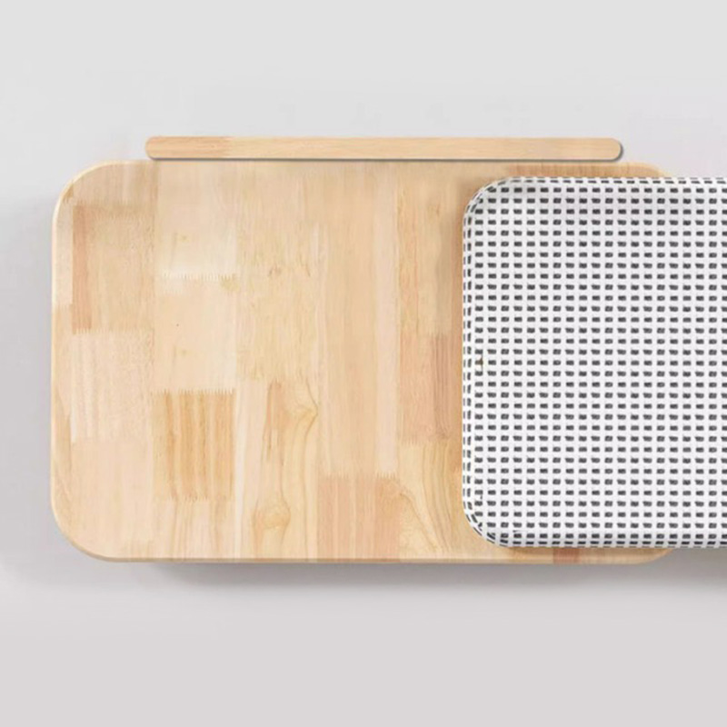 A macskaágy AA minőségű gumiból készül, minden szilárd fa keretből, természetes és környezetbarát, fa viaszolaj -bevonatból, hogy megakadályozzák a nedvességet és a penészletet, könnyebben tisztítható, tartós és nem laza.