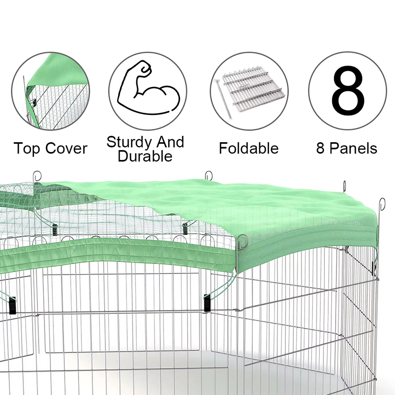1. Minden körüli védelem: A Metal Dog Playpen lélegző és napbiztos felső borítója kényelmes árnyékot biztosít a háziállatok számára nyáron. Slide Lock Biztonsági ajtó kialakítása, kombinálva a kényelmes hozzáférést és a védelmet.